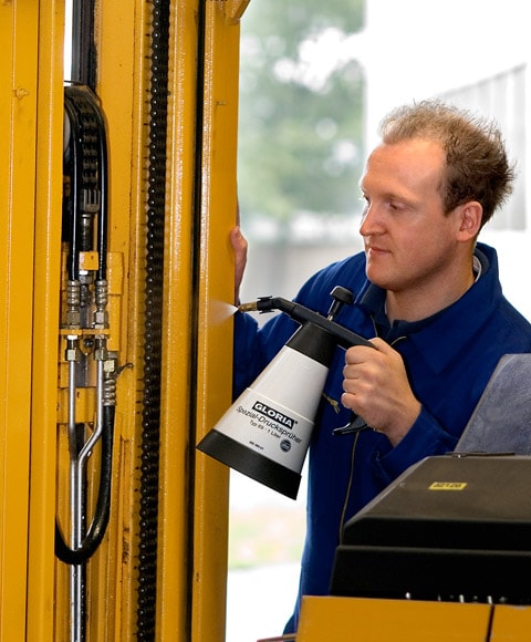 Gloria koncentratsprutor tål de flesta medel, men ej klor, svavelsyra eller saltsyra. Ämnen inom surhetsområdet PH-värde < 5 samt lösningsmedel och starkt frätande ämnen får ej fyllas i behållaren.